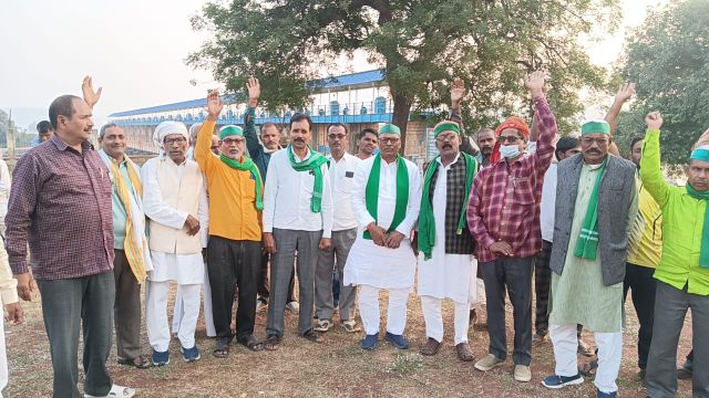 किसानों का धरना दूसरे दिन भी जारी 72 घंटे बाद किसान करेंगे स्टेट हाइवे वाराणसी शक्ति नगर जाम