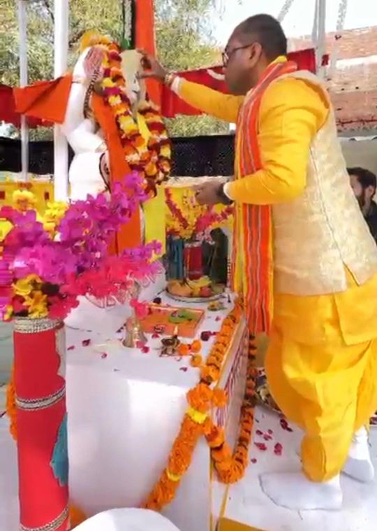 प्रतिष्ठित व्यवसाई अजय अग्रवाल ने वैदिक मंत्रोच्चार के साथ विधि विधान से किया मा सरस्वती का पूजन